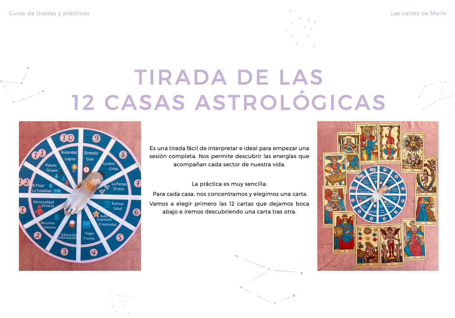 Inspirada por las 12 casas astrológicas, nos va a permitir aclarar cada aspecto de nuestra vida, eligiendo una carta por cada casa.