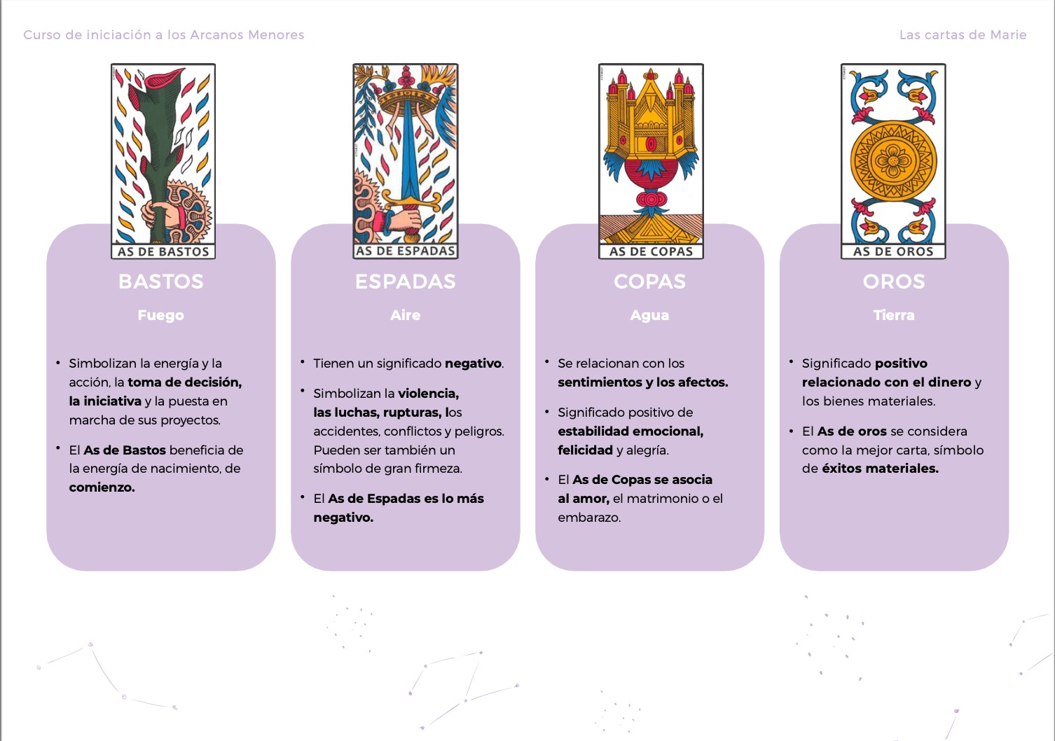 En este curso, propongo ayudarte a descubrir el significado de los 4 palos: