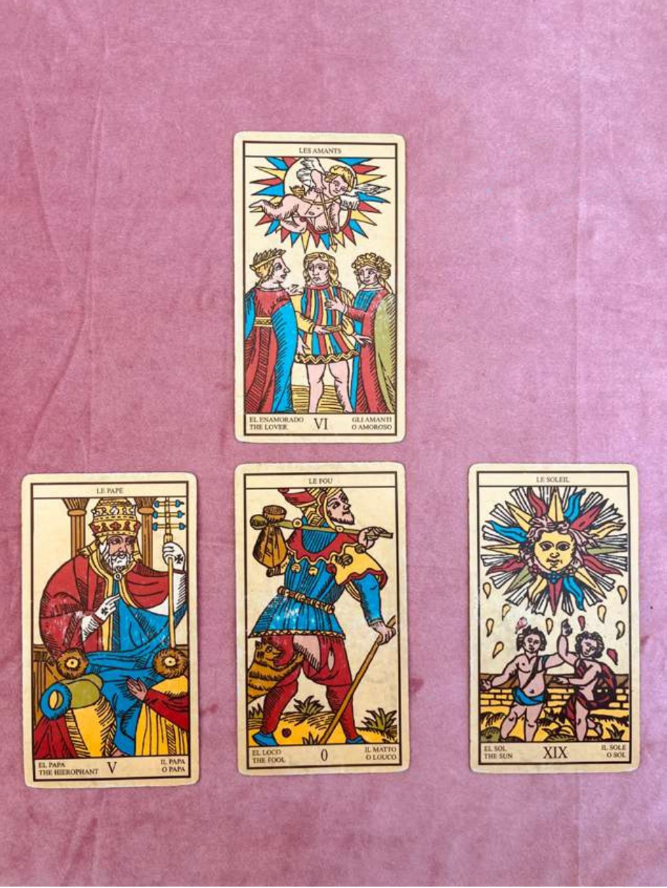 La Estrella, la Luna, el Sol, el Juicio y el Mundo.